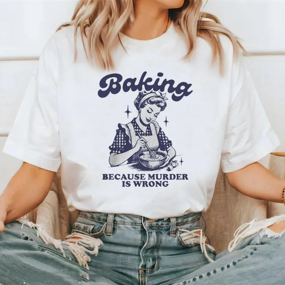 Baking Because Murder Is Wrong Tshirts Funny Women Sweatshirt, Retro Sweatshirt, Vintage Shirt, Womens Sweatshirt, Cooking Sweat