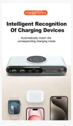 – **Intelligent temperature control technology**: high temperature automatically adjusts the power, prolonging the life of the charger and device battery.