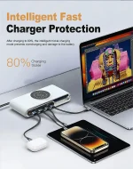 – **Compact and lightweight design**: more space-saving than traditional multi-port chargers, suitable for business trips and travelling.